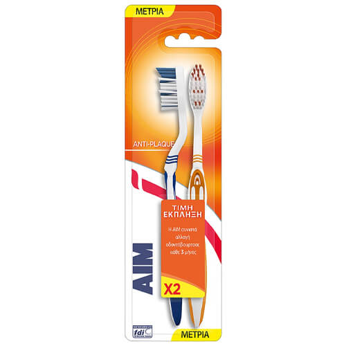 AIM ΟΔΟΝΤΟΒΟΥΡΤΣΑ (2τεμ) - (ΑΝΤΙPLAQUE) (ΜΕΤΡΙΑ)