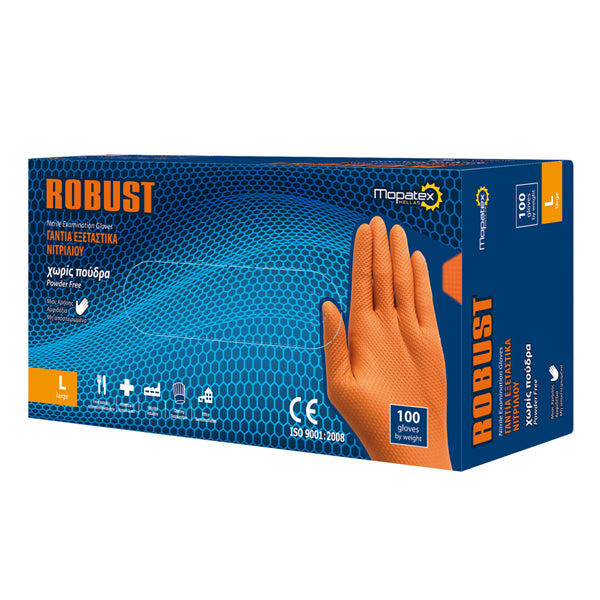 ROBUST ΓΑΝΤΙΑ ΝΙΤΡΙΛΙΟΥ ΠΟΡΤΟΚΑΛΙ (100τεμ.) - (LARGE)(ΧΩΡΙΣ ΠΟΥΔΡΑ)