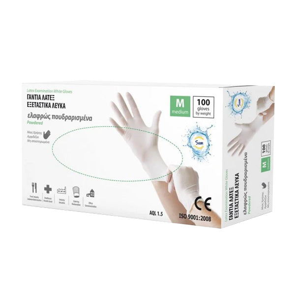 SAM ΓΑΝΤΙΑ ΛΑΤΕΞ ΕΛΑΦΡ. ΠΟΥΔΡΑΡΙΣΜΕΝΑ ΛΕΥΚΑ (100τεμ.) - (MEDIUM)