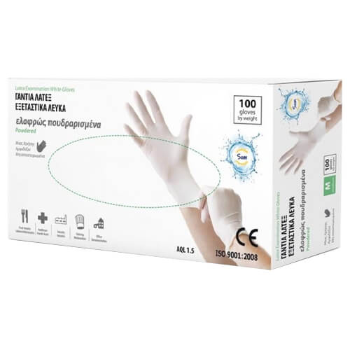 SAM ΓΑΝΤΙΑ ΛΑΤΕΞ ΕΛΑΦΡ. ΠΟΥΔΡΑΡΙΣΜΕΝΑ ΛΕΥΚΑ (100τεμ.) - (SMALL)